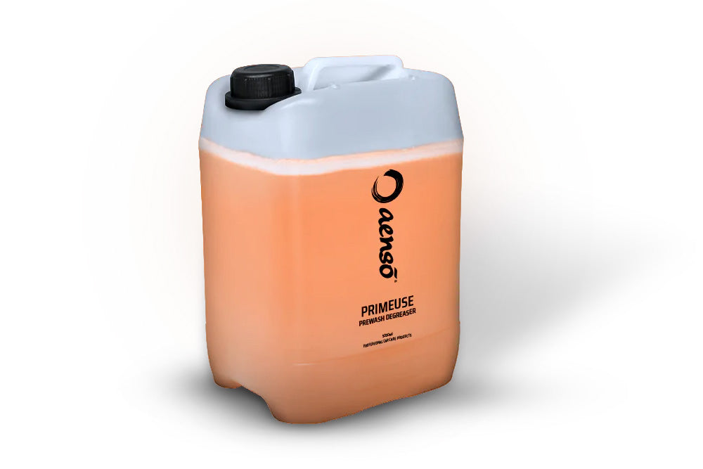 Aensō Primeuse is a powerful pre-wash degreaser that is used on heavily soiled surfaces before washing. It helps to loosen and remove deposits of road grime, salt, and grease from the exterior and engine bay of vehicles. To use it, spray it on the soiled surface and allow it to react. If needed, agitate with a soft brush, then rinse off with a pressure washer. This product can be added to Aensō Polaris Snowfoam and Aensō One Shampoo to boost their performance. Be sure not to let it dry on the surface.
