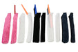 - 3 narrow (one white terry, one black terry, one pink plush)