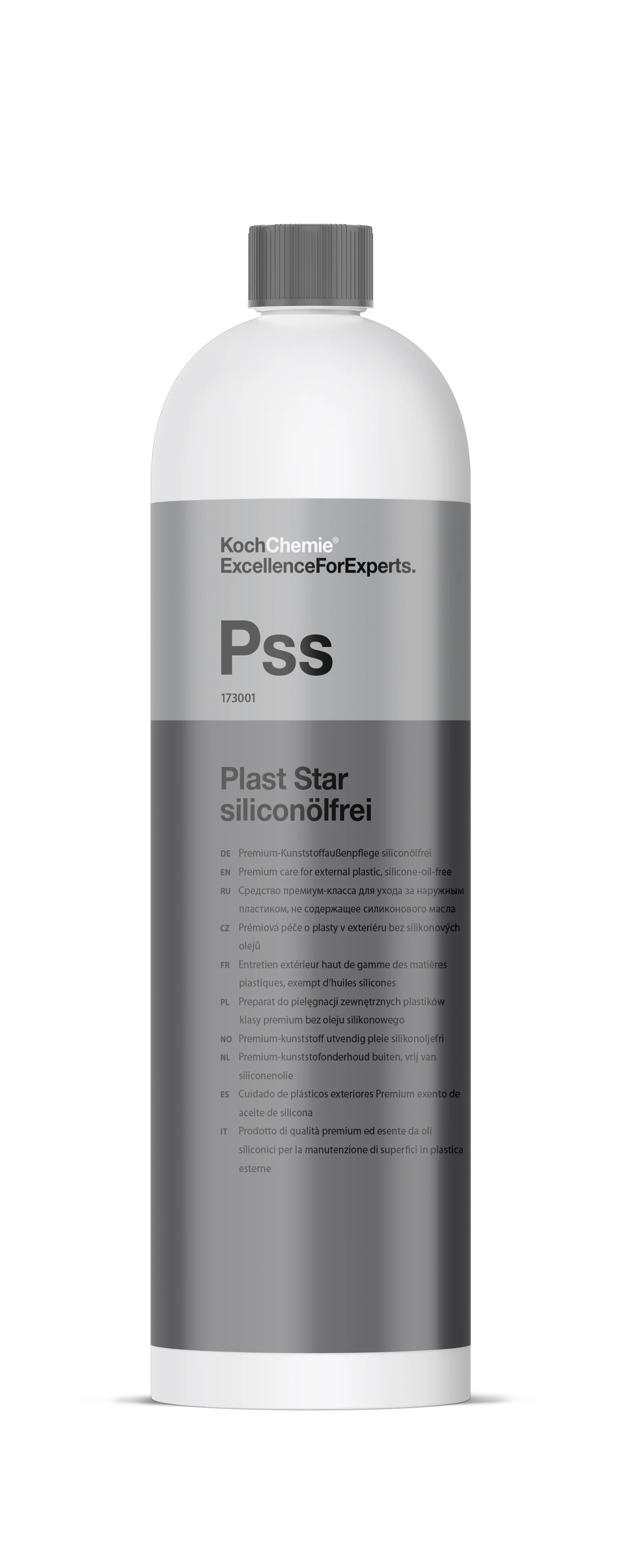 Introducing a premium, silicone oil-free solution in the world of plastic care products. This advanced formula provides lasting protection for months, offering exceptional UV stability. The treated surfaces restore their original semi-matte finish, thanks to a unique care system (micro-emulsion) that bonds securely to the material. It also prevents door seals from freezing. Plast Star Silicon-Free stands out with its long-lasting effects, ease of use, and a pleasant fragrance, making it a top choice for various applications. It's ideal for tires, rubber parts, and more, with official Daimler approval.