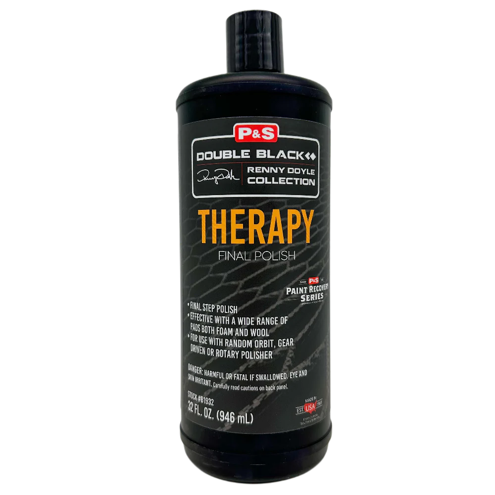 To apply, choose your preferred machine and pad combination. Dispense four to five small drops of Therapy onto the polishing pad. Working with light to moderate pressure, polish a small area (approximately 2’x2’ or less) until the desired clarity and shine are achieved. Wipe off the residue with a clean microfiber towel and assess the finish. Ensure adequate lubrication during use by maintaining the right amount of product on the surface. Continue this process panel by panel until the entire vehicle achieves a uniform, high-gloss finish.