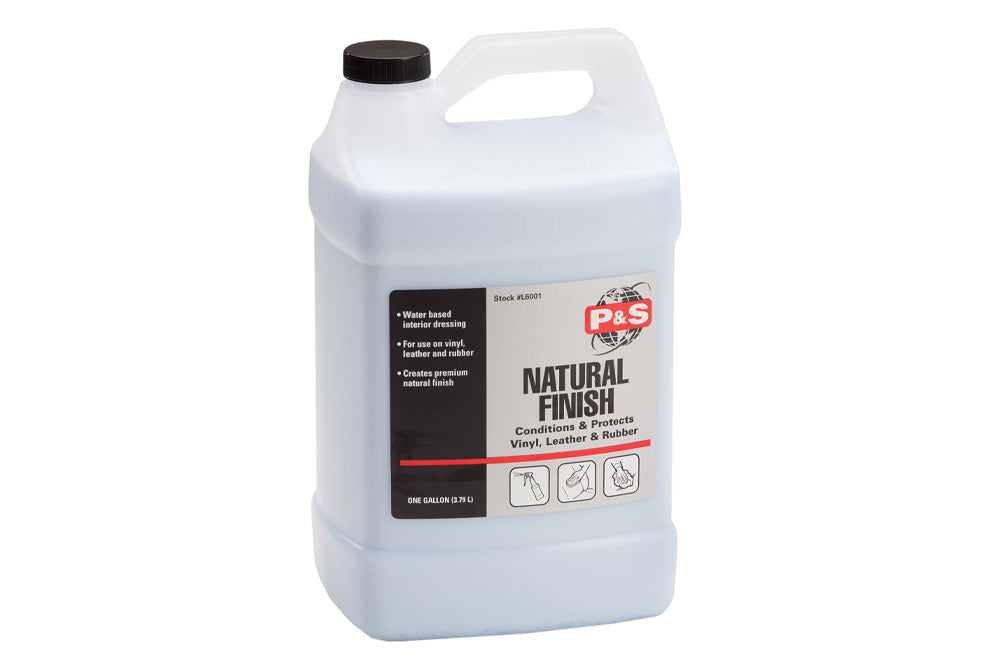 P&S Natural Finish is an interior dressing for cars that conditions, softens, preserves, and protects all vinyl or rubber surfaces. It contains UV sunscreen to protect against the harmful effects of ultraviolet radiation, and it provides a premium, lower gloss finish that gives a natural shine to surfaces. This product is an excellent interior dressing and preservative, and it includes a pleasant scent that helps to deodorize your vehicle in one easy step. Whether you want to restore the softness, shine, and overall health of your vinyl or rubber surfaces, or you simply want to protect them from the elements, P&S Natural Finish is a great choice.