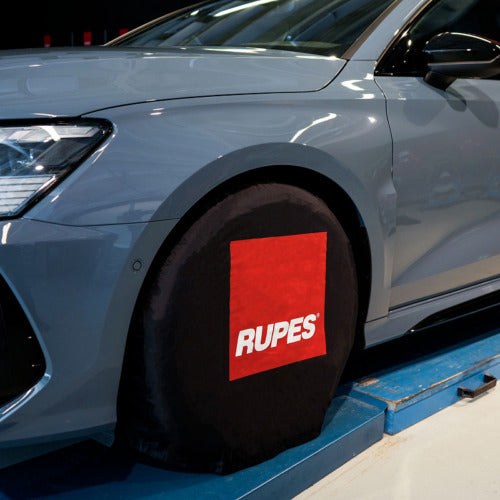 The new RUPES Wheel Covers are expertly designed to protect wheels from damage and dirt, making them an essential item for any body shop or detailing center. These high-quality, waterproof covers prevent polishing residues, sanding dust, chemicals, and other substances from settling on tires and wheel rims. Easy to use, they can be quickly placed on the wheels without the need to lift the car or perform any complicated steps, ensuring a hassle-free application every time.