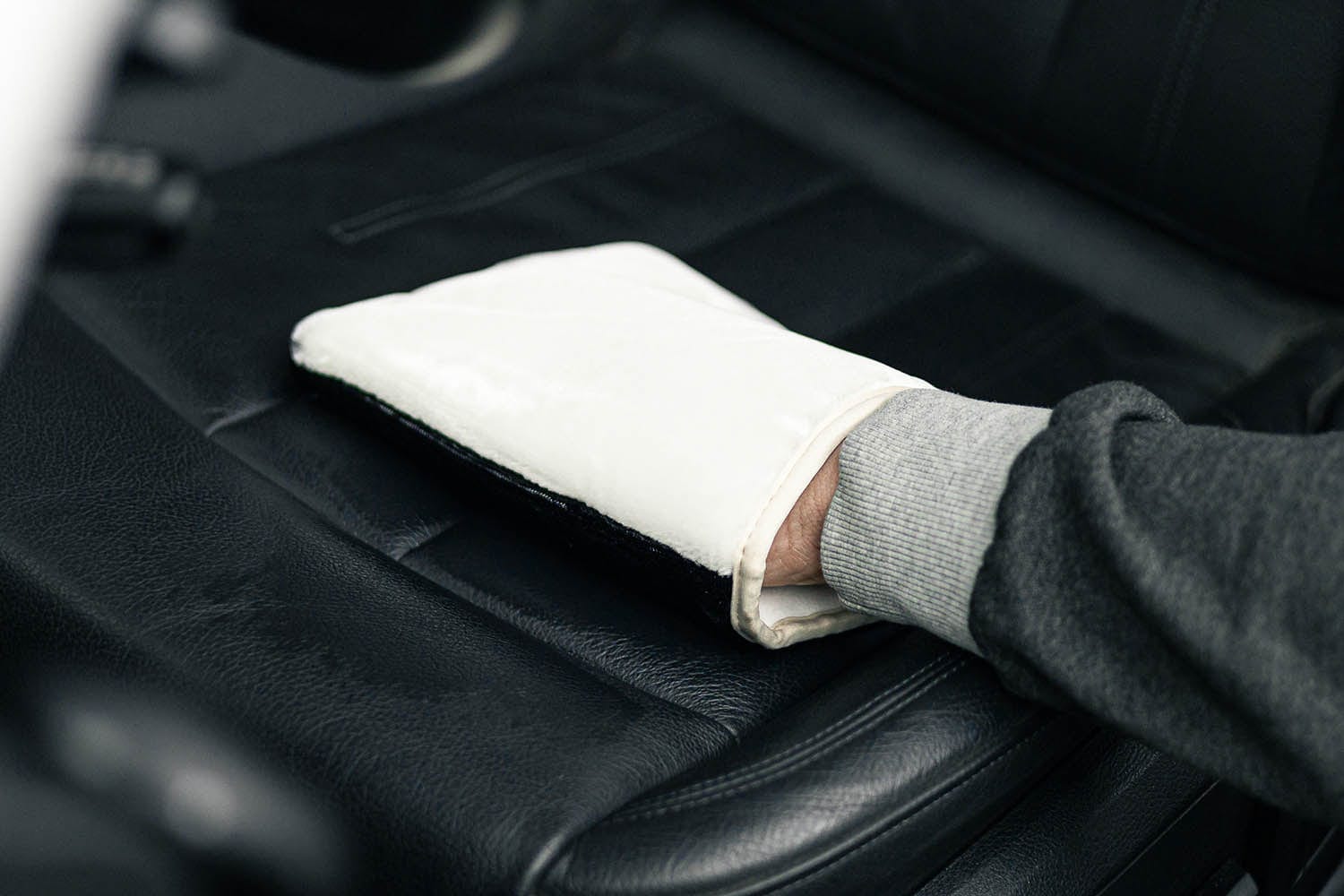 Scrub interior vehicle surfaces like plastic, leather & vinyl clean with the brush-like, bristle-type nylon material. The firm but gentle fibers scrub deep into surface pours and contours. The black and white sides are the same material and can be used for tracking which side you used. Use the Scrub Ninja Max car interior scrubber with your favorite cleaner and wipe away residue with a clean microfiber towel. The large hand mitt size is great for large open areas, like bench seats or dashboards.