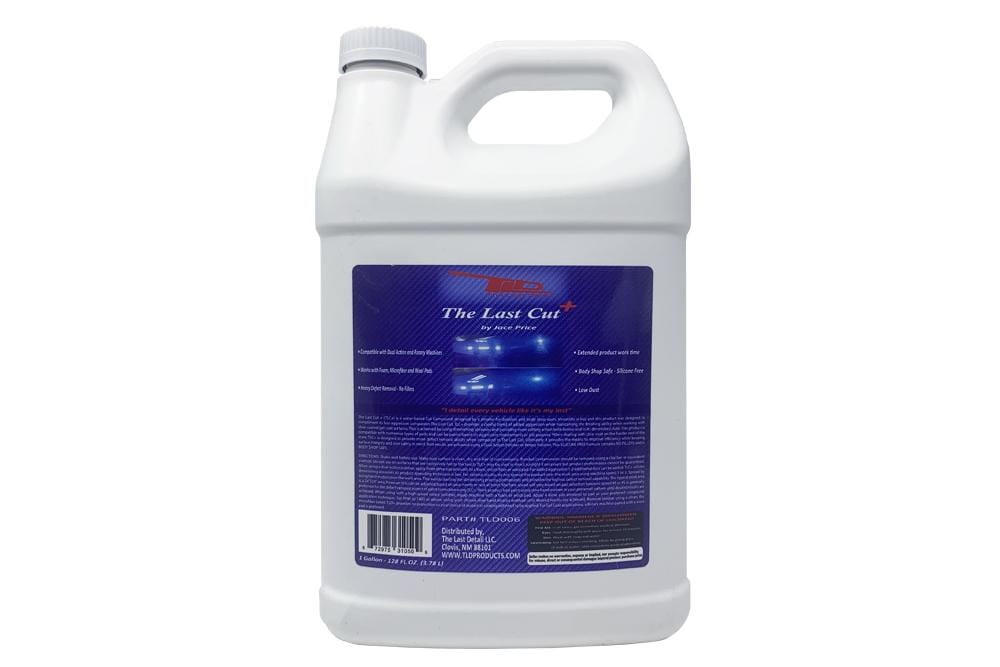 The Last Cut + (TLC+) is a water-based Polishing Compound designed by a detailer for detailers and body shops. Versatility is key and this product was designed to compliment its less aggressive companion The Last Cut. In relation to The Last Cut, this version provides a calculated blend of increased aggression while still maintaining the finishing ability when working with clear coated/gel coated surfaces. This is achieved by using diminishing abrasives which provide more cutting action before and in its diminishing state. This product is compatible with numerous types of pads and can be paired based on the aggression requirements of job purpose. When dealing with clear coat on the harder end of the scale, TLC+ is designed to provide more defect removal ability when compared to The Last Cut. Ultimately it provides the means to improve efficiency while keeping surface integrity and user safety in mind. Best results are achieved using a Dual Action Polisher or Rotary Polisher. This SILICONE FREE formula contains NO FILLERS and is BODY SHOP SAFE.